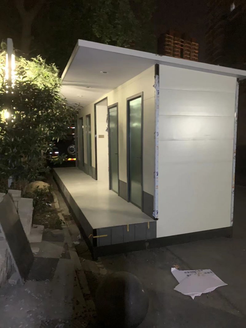 MORE拼裝廁所;在廠里做好各個廁所部件,再到現場組裝在一齊,適合不易運輸的大型廁所。這座箱式廁所,女廁5個蹲位內配工具間,男廁2個蹲位+2小便斗,第三衛生間由殘疾馬桶、助力洗手盆和兒童馬桶、兒童洗手盆外加嬰兒臺等設施。廁所前后有窗,通風采光,前部走廊裝有屋檐,防雨防曬。此廁所位于公路綠道邊,整體大氣,功能齊全,造型美觀,是一道難得的靚麗景觀!
